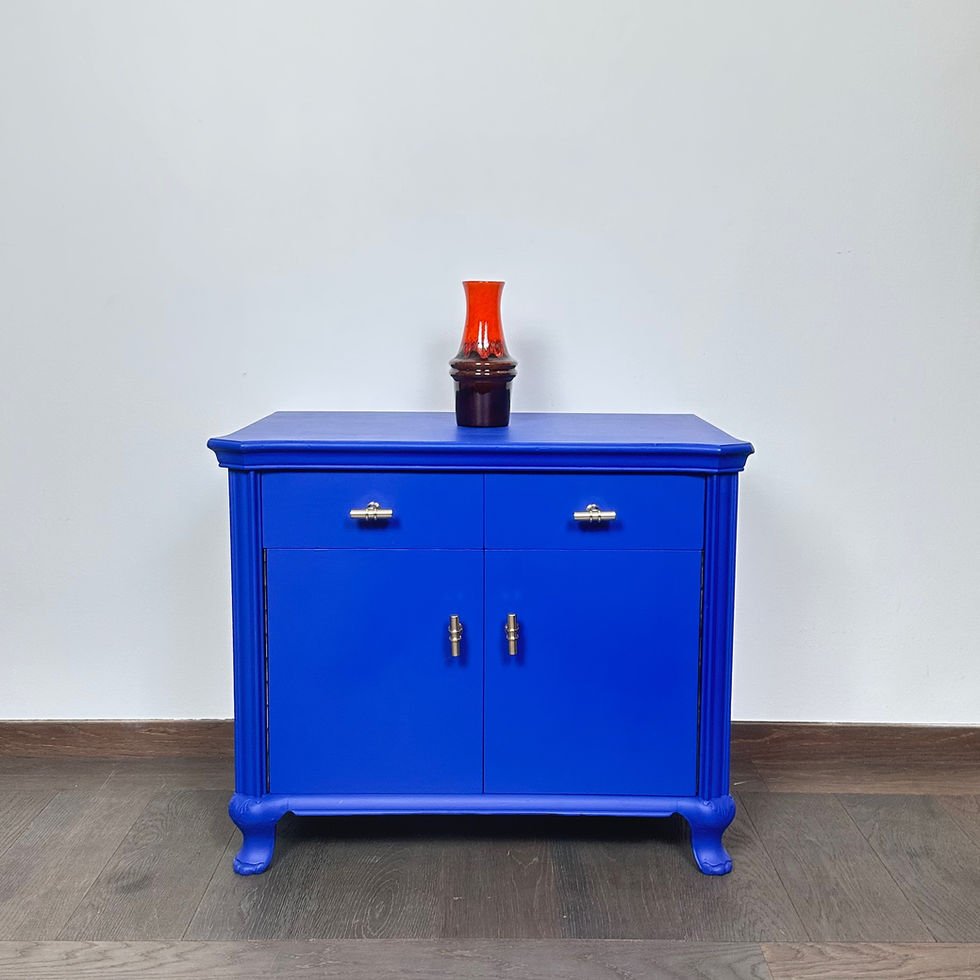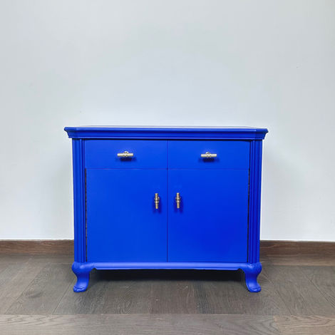 Restauriertes Kästchen in ultramarinblau